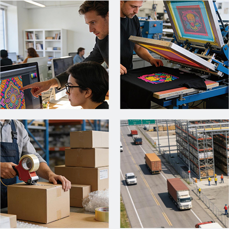 Our products are printed and fulfilled in multiple fulfillment centers across the United States, ensuring fast production and reliable local shipping.